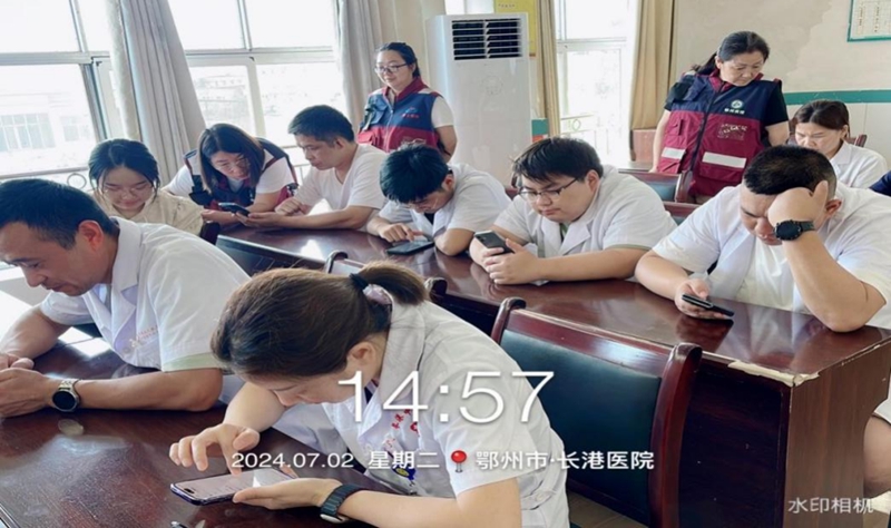 随后,镇重主管一行深入鄂城区人民医院和长港卫生院一线医护人员职业健康素养监测与干预活动现场,手把手地指导市、区两级工作人员完成了80余人的现场监测与干预实操。