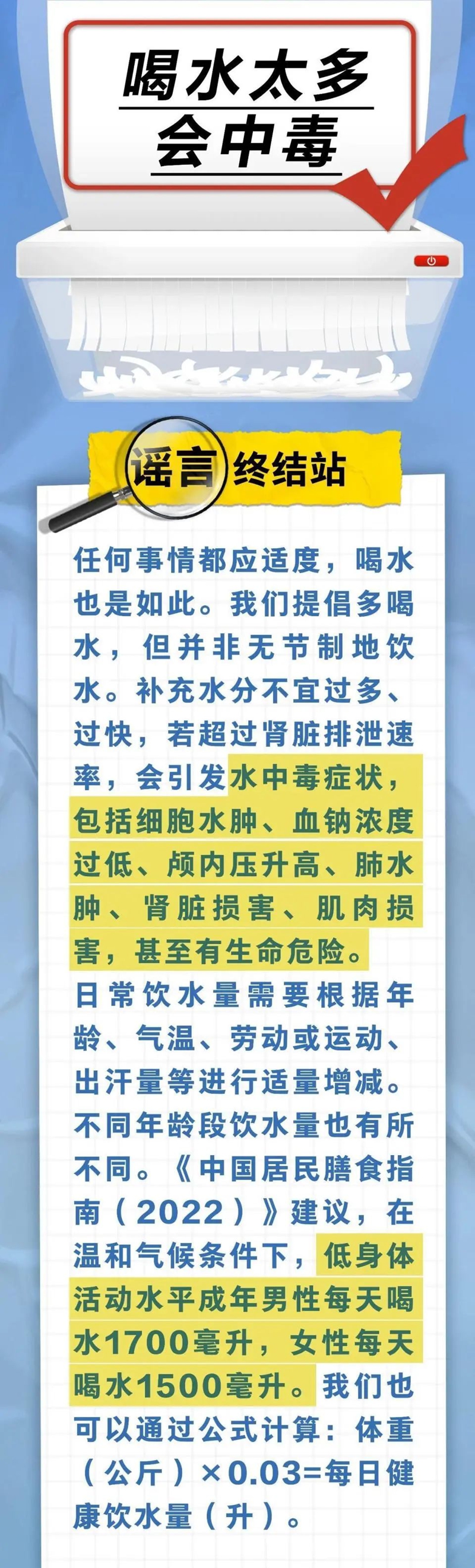生活中我们每天会喝水,那么每天喝多少水才健康?喝水太多会中毒吗?一图了解↓